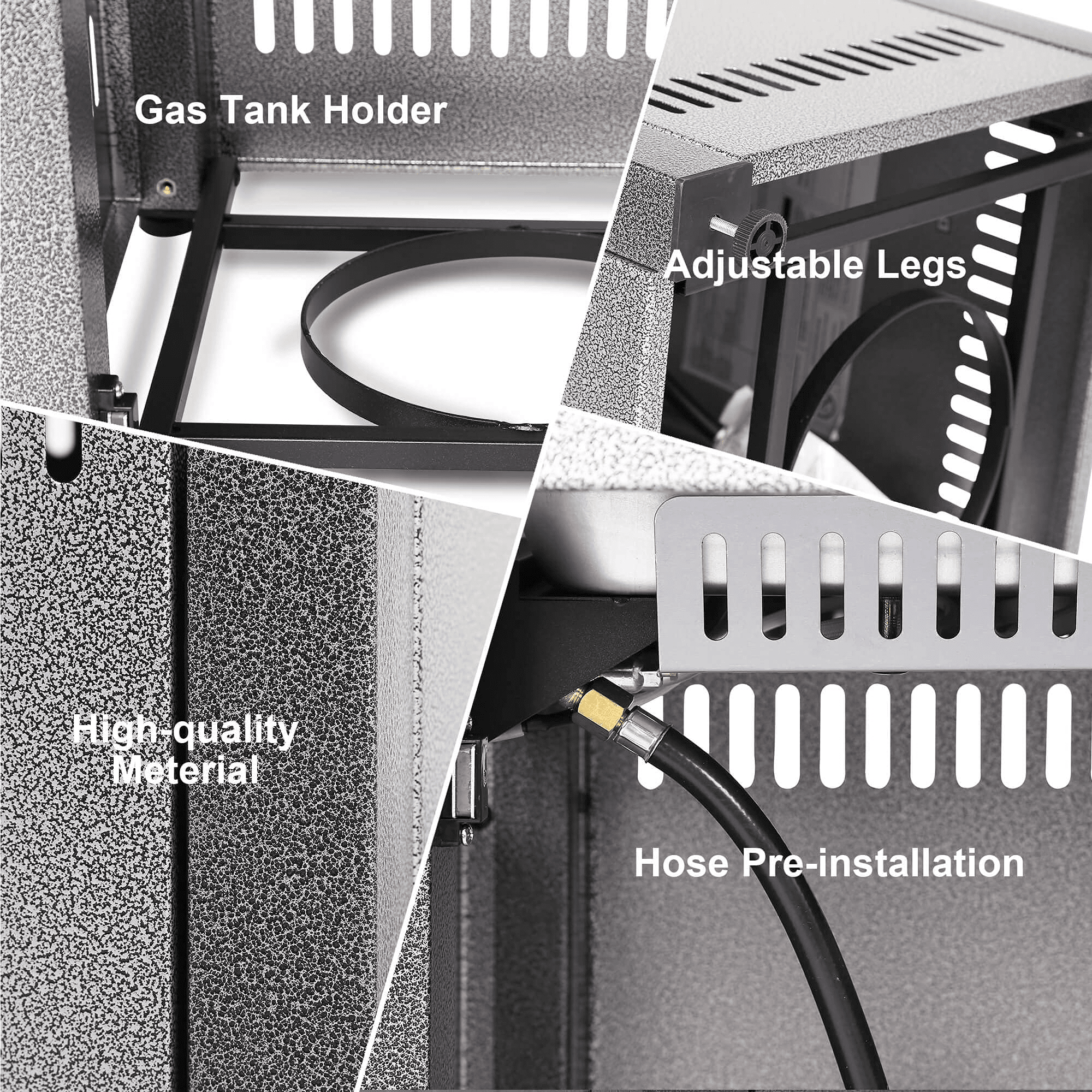• User-friendly Design - Verstile output for the fire pit. An easy access door allows you to conceal a 20 lbs. propane tank (not included).The handle design makes it easier to check or replace the gas cylinder. The built-in hook on the table lid also makes it more convenient for you to pick.