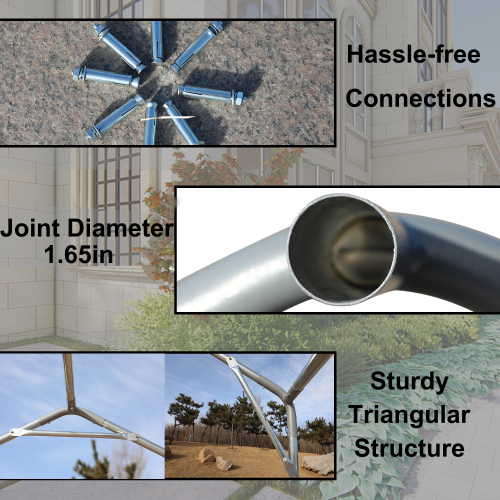 • [Easy to Install and Disassemble] The carport kit comes with installation instructions, each part is marked with a number, follow the included instructions for step-by-step installation. The metal rods are attached with spring-loaded buttons, no additional tools are needed, and installation and disassembly are very easy.