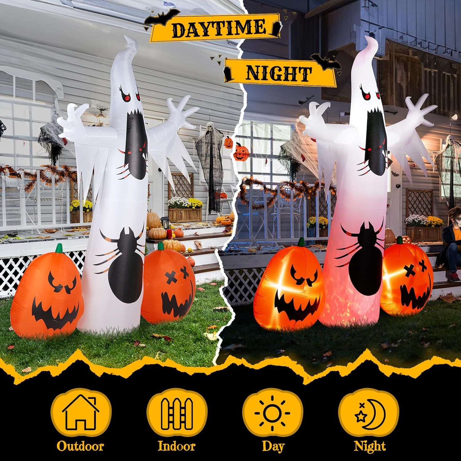 Halloween Outdoor Decorations, Blow Up Yard Decorations, Built-in LED Lights Décor for Indoor Home Party Garden Lawn Store, 5.9FT Pumpkin Ghost