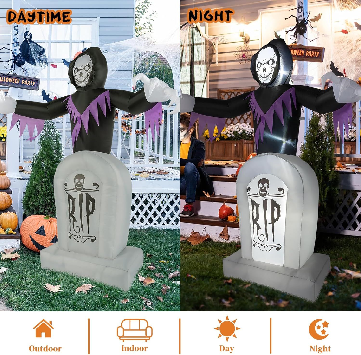 [SPOOKY Appearance Design]Our inflatable witches decoration is 3.2 ft long, 2.9ft wide, and 5.9 ft high. The cute Halloween decoration will also appeal to kids. This childlike décor is perfect for your friends as a gift. This gift will bring you joy and is ideal for your Halloween display.[Easy to Set up]All you need to do is close the zipper at the bottom and plug it in, the auto-inflatable will inflate in just a few seconds for convenience. The scary outdoor inflatable has bright built-in LED lights that look great at night and illuminate neighbors and guests nicely to attract them.[Durable and Stay up Easily] Our blow up light garden decoration is made of high quality fabric, lightweight and durable, easy to store after deflated and can be reused many times. The Halloween inflatable lawn decoration is equipped with ground stakes and ties to keep the tree in a stable condition. Our LED lighted home decor looks so pretty when it is inflated, and it will stay up. Keeping in high spirits, be perfect for indoor and outdoor use.[Widely Used]Our LED light-up decoration is perfect for Halloween patio decorations. The holiday inflatable can also be used as stage props , make your home patio extra scary, attract customers to your store.[Customer Service] We Offer You Best Customer Service, If You Have Any Questions, Please Feel Free to reach out. Our service team would provide 24-hour premium service to help solve any of the problems. Hope you have a great shopping experience.